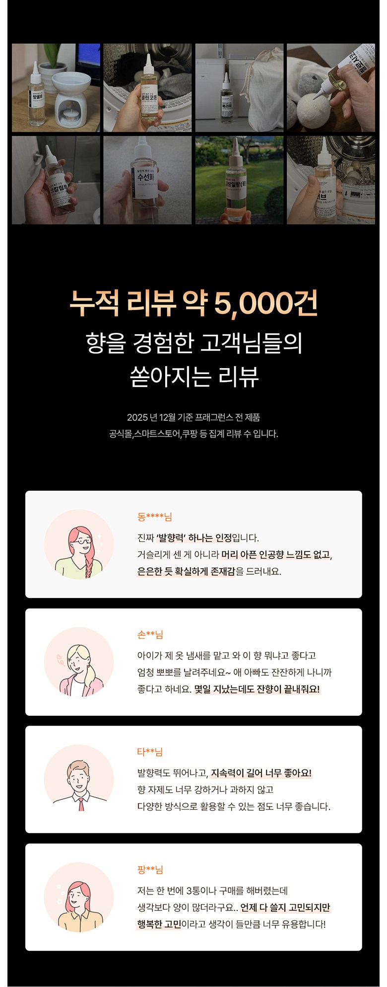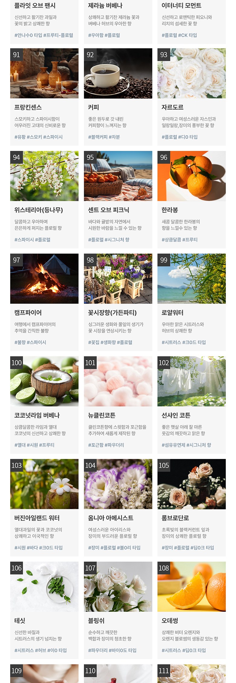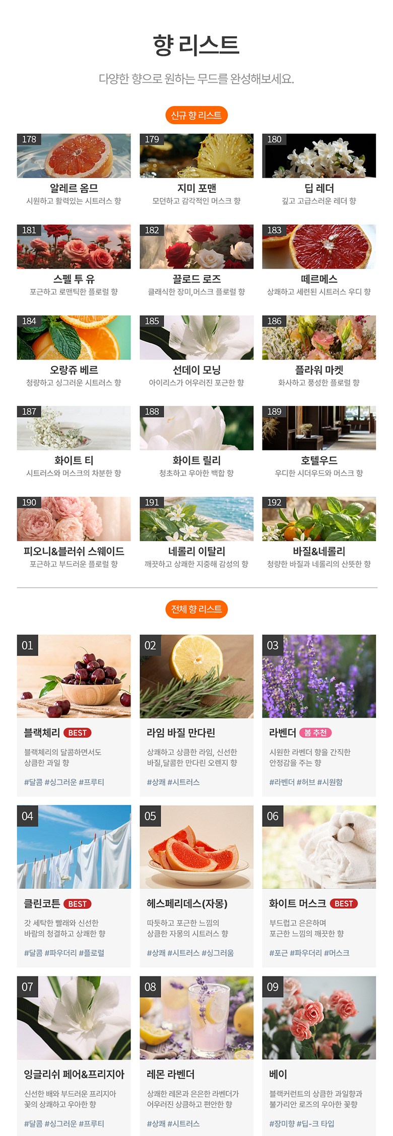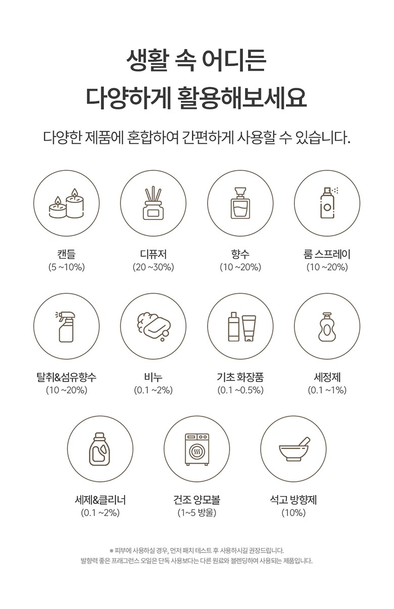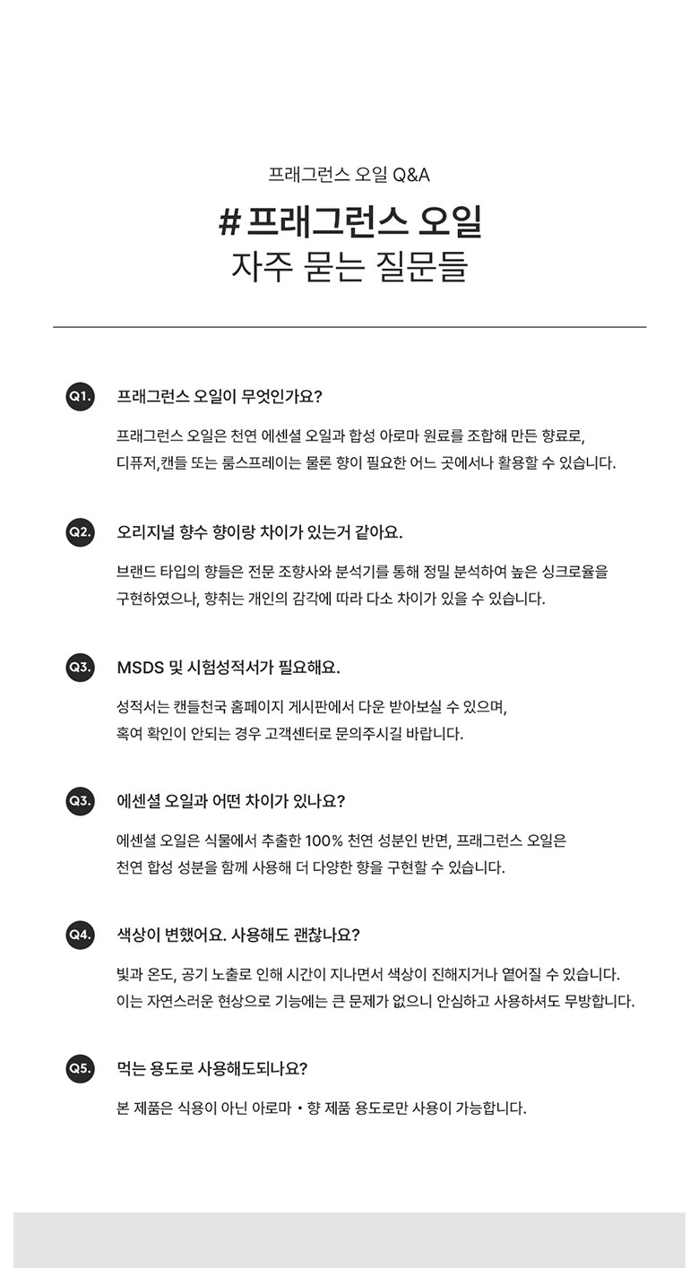| 품명 및 모델명 | 발향력 좋은 프래그런스 오일 원액 100ml | 인증/허가 사항 | 해당사항없음 |