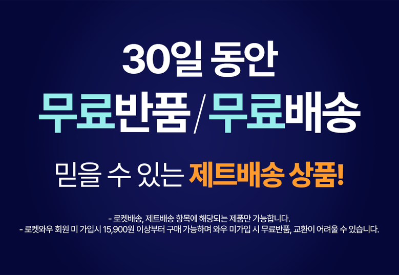 | 교환/반품 비용 | ㆍ와우멤버십 회원: 무료로 반품/교환 가능 ㆍ와우멤버십 회원 아닌 경우: 1) [총 주문금액] - [반품 상품금액] = 19,800원 미만인 경우 반품비 5,000원 2) [총 주문금액] - [반품 상품금액] = 19,800원 이상인 경우 반품비 2,500원 |