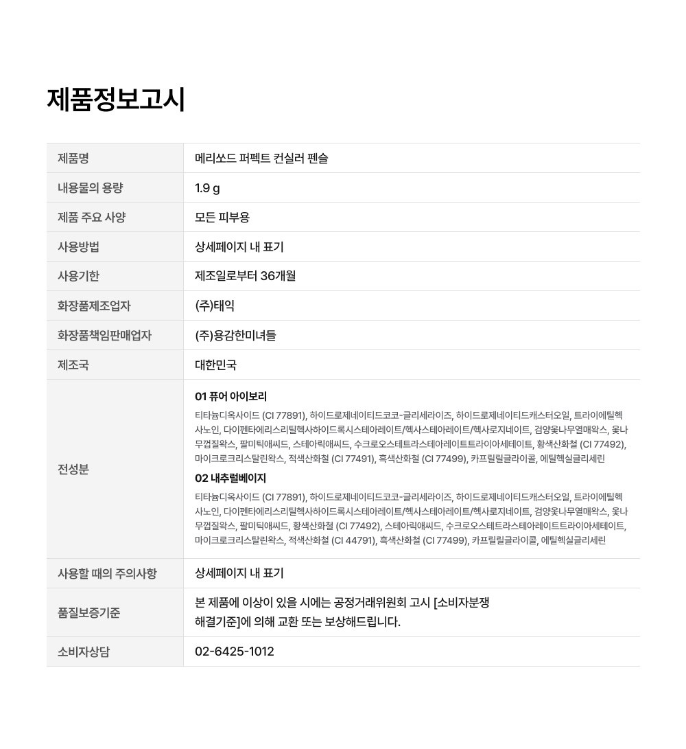 메리쏘드 퍼펙트 컨실러 펜슬 1.9g + 펜슬 샤프너 세트