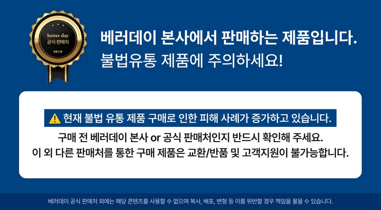 | 교환/반품 신청 기준일 | ㆍ단순변심에 의한 교환/반품은 제품 수령 후 7일 이내까지, 교환/반품 제한사항에 해당하지 않는 경우에만 가능 (배송비용과 교환/반품 비용 왕복배송비 고객부담) ㆍ상품의 내용이 표시·광고의 내용과 다른 경우에는 상품을 수령한 날부터 3개월 이내, 그 사실을 안 날 또는 알 수 있었던 날부터 |