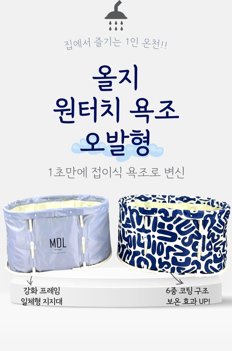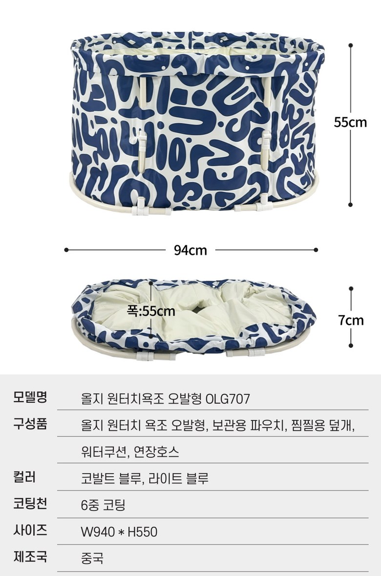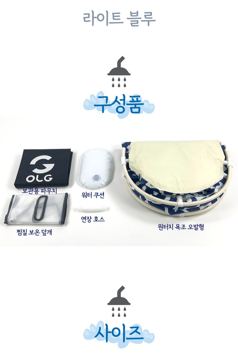 | 품명 및 모델명 | 올지 원터치 접이식욕조 오발형 OLGT003 | 인증/허가 사항 | 해당사항없음 |
