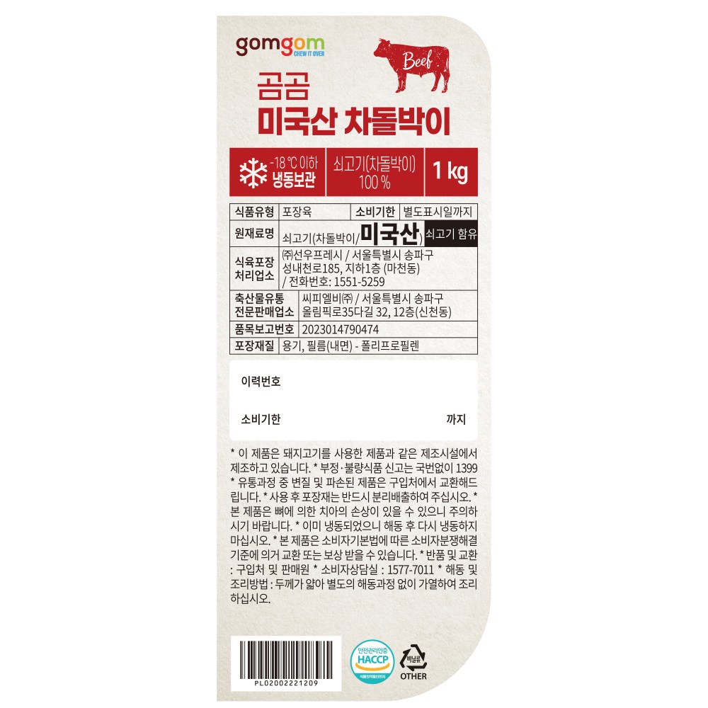 | 품목 또는 명칭 | 곰곰 미국산 차돌박이 | 포장단위별 내용물의 용량(중량),수량,크기 | 1kg x 2개 |