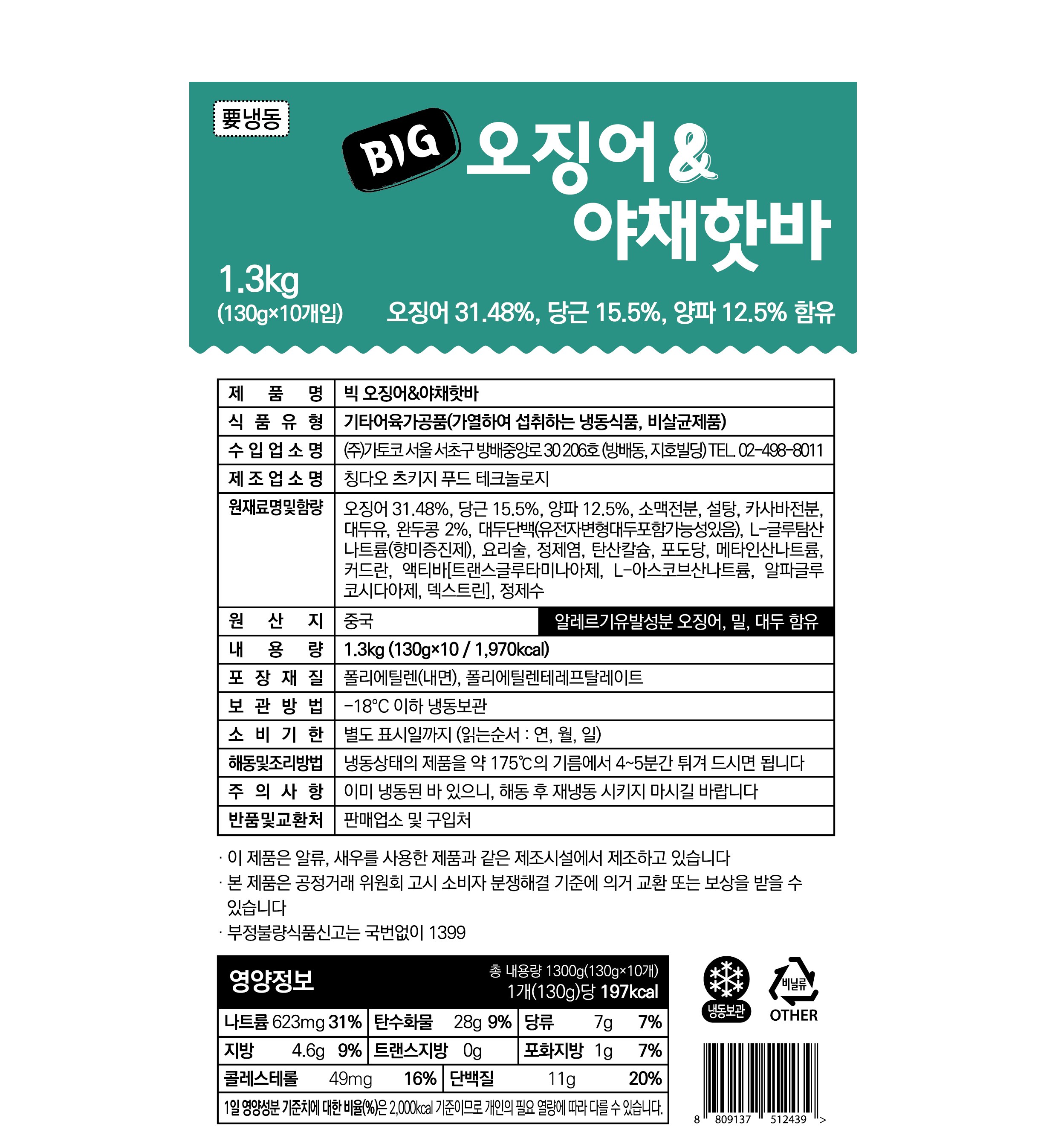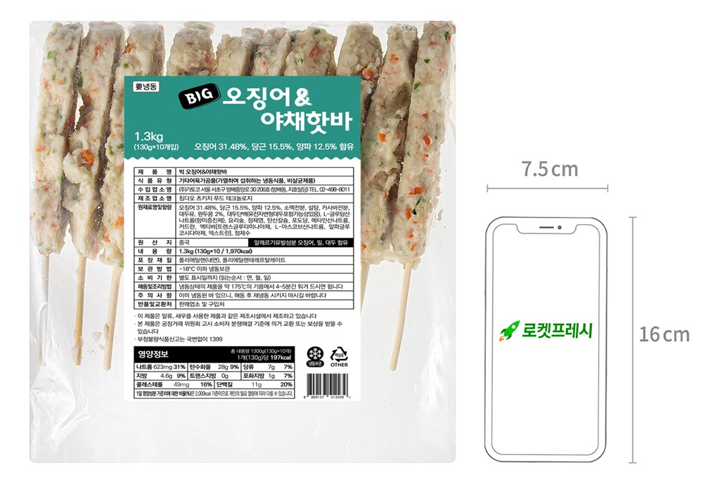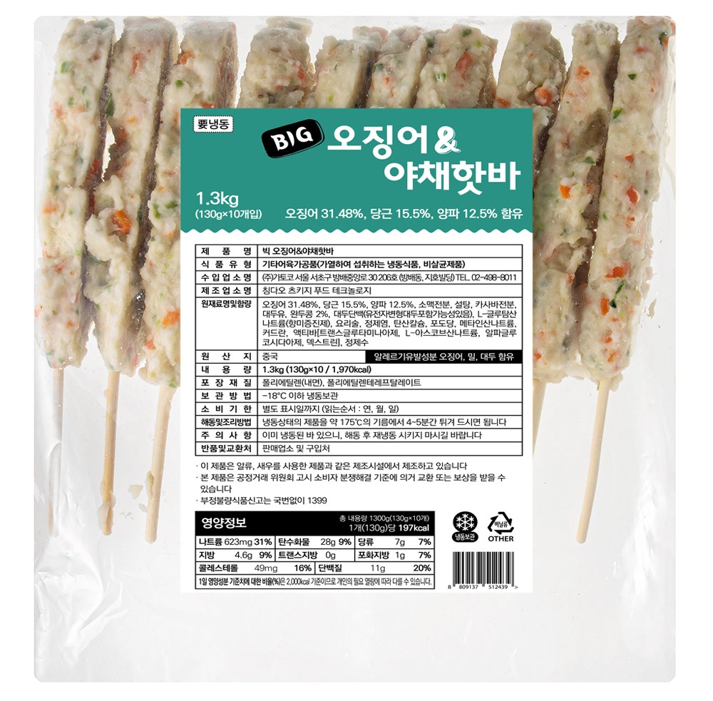 쫀득한 오징어 야채 핫바예요. 쫄깃쫄깃한 오징어를 사용해 씹는 재미를 선사한답니다. 여기에 당근, 양파, 완두콩 등으로 고소하면서도 담백한 풍미를 더했지요. 간편하게 조리해 간식이나 안주로 활용해보세요.