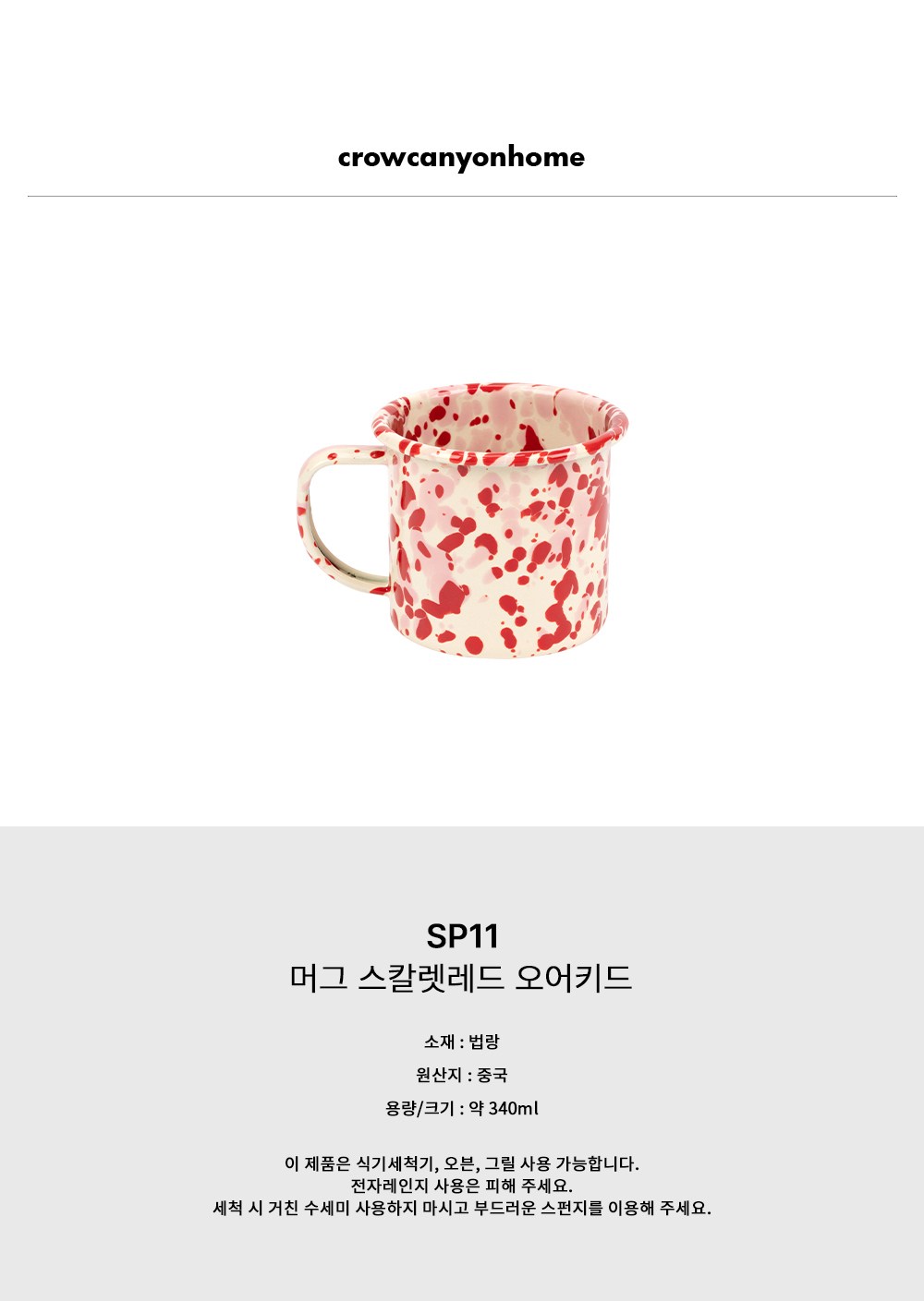 | 품명 및 모델명 | 크로우캐년 SP11 머그 스칼렛레드 오어키드 | 재질 | 컨텐츠 참조 |