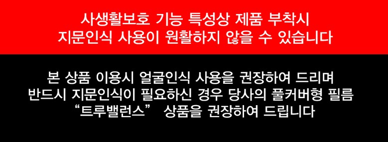 상품의 사생활 보호 기능 특성상 디스플레이 지문인식률이 현저히 저하될 수 있습니다.