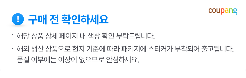 - ㆍ모니터 해상도의 차이로 인해 색상이나 이미지가 실제와 달라, 고객이 단순 변심으로 교환/반품을 무료로 요청하는 경우