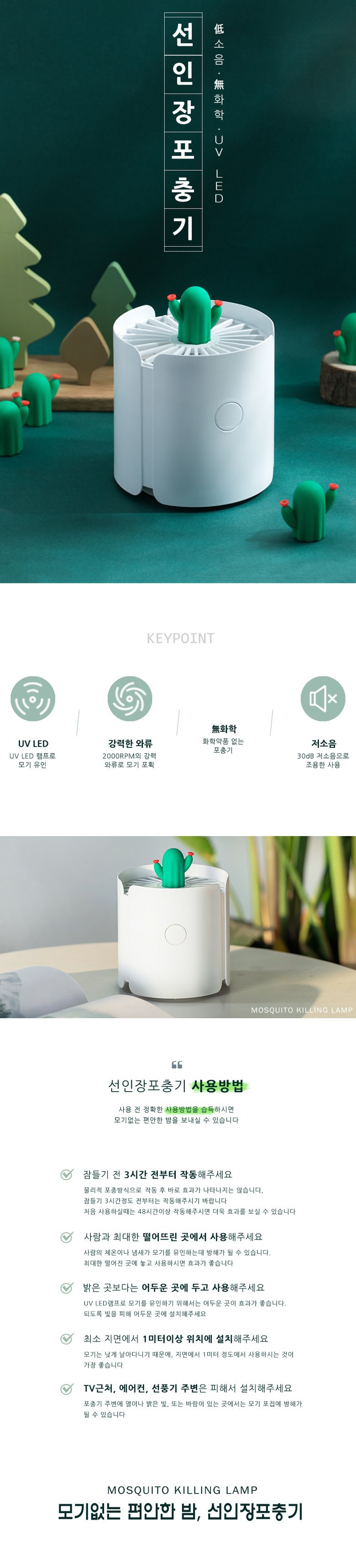 귀여운 선인장 포충기 저소음 모기퇴치기 가정용 인테리어 무드등