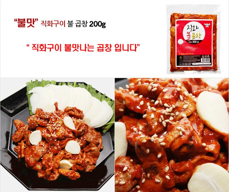 [5팩 특가행사] 곱창200g(1+1+1+1+1) 총1kg / 직화로 직접구운불맛 /소문난 양념곱창 / 맛없다면 무료반품