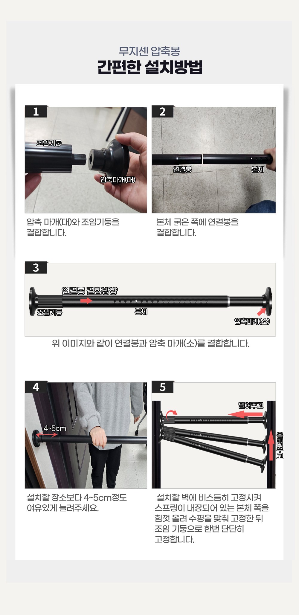 계좌이체- 구성품: 압축봉 + 조임기둥 + 압축마개(소, 대) + 100cm 연결봉 2p + 브라켓