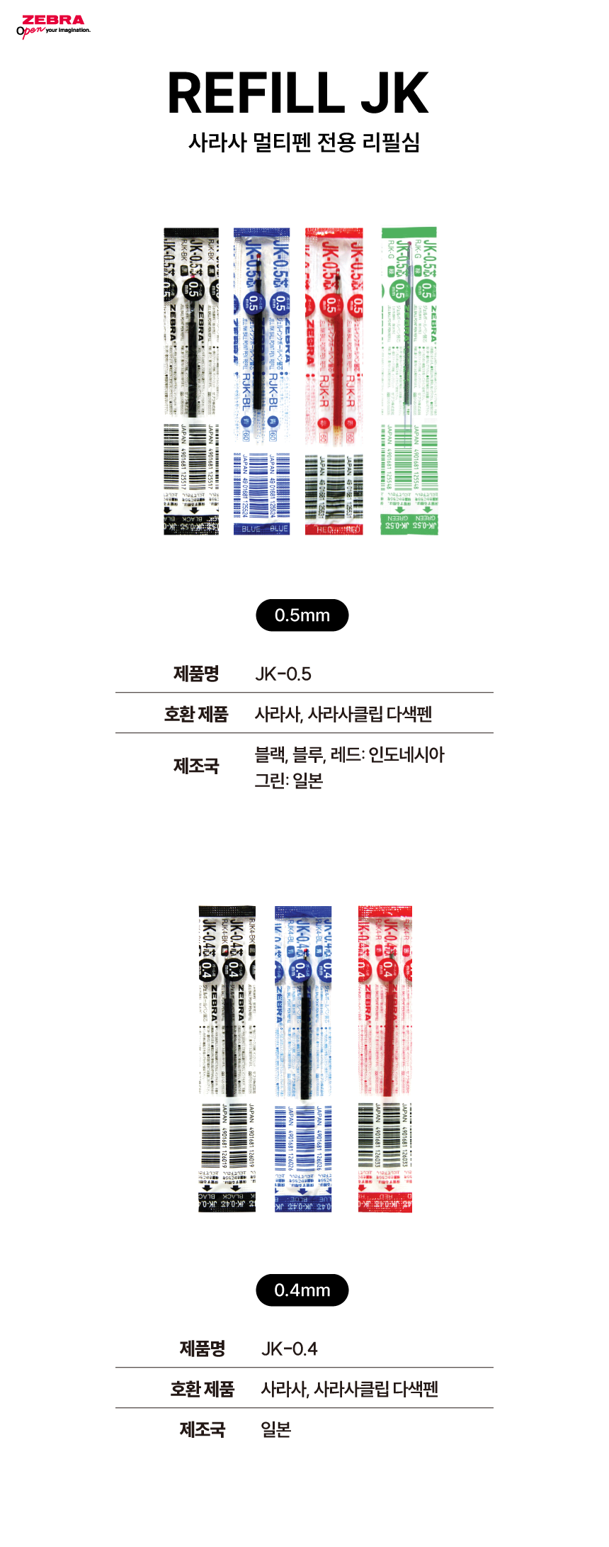| 품명 및 모델명 | 제브라 JK-0.5 리필심 0.5mm | 인증/허가 사항 | 해당없음(14세이상) |