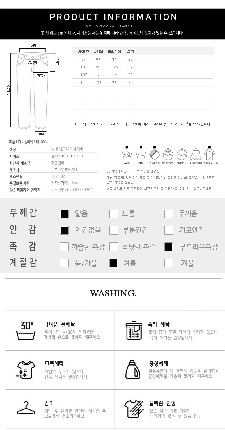 | 제조국 | 대한민국 | 세탁방법 및 취급시 주의사항 | 상품 상세페이지 참조 |