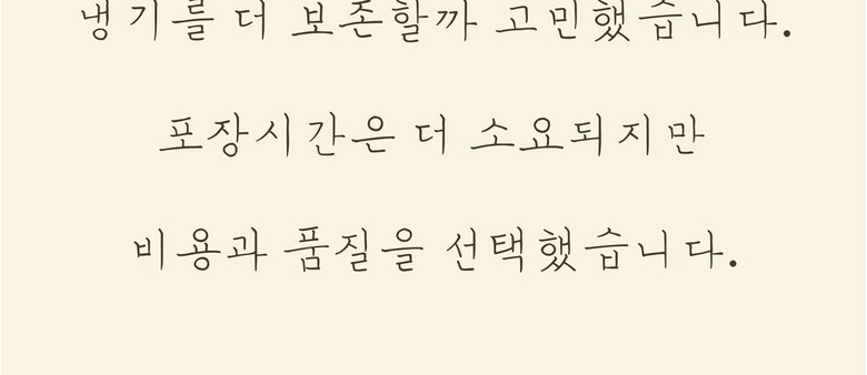 | 배송방법 | 신선/냉장/냉동 | 배송비 | 무료배송 - 도서산간 지역 배송불가 |