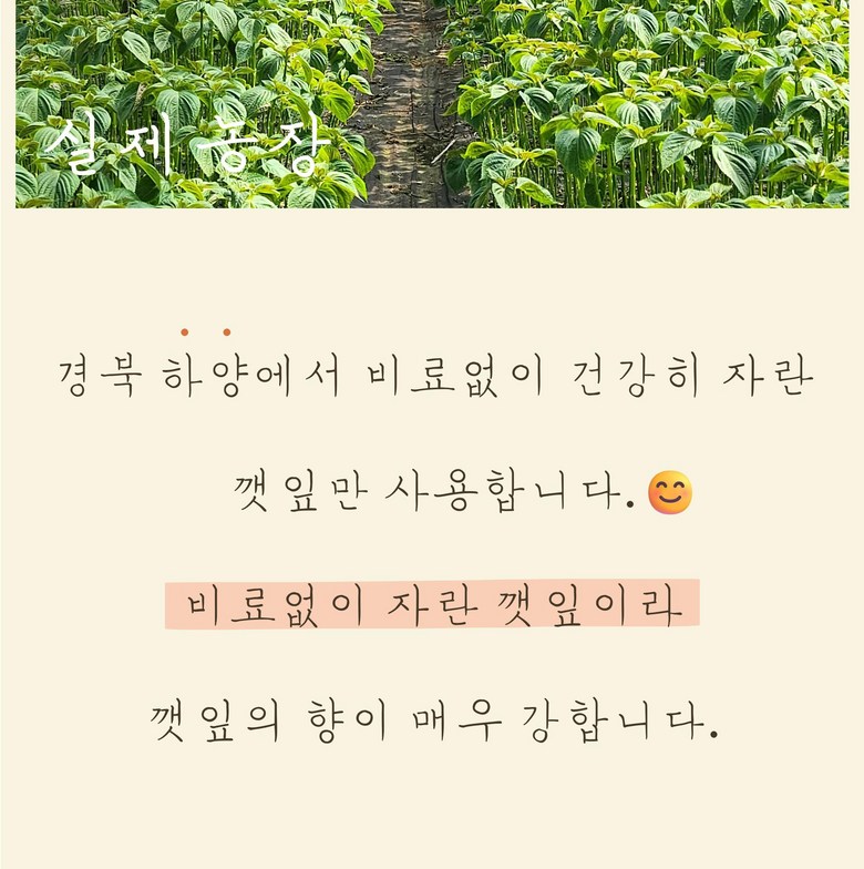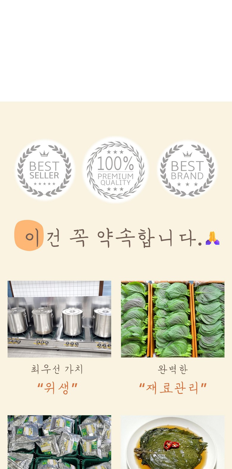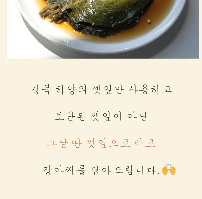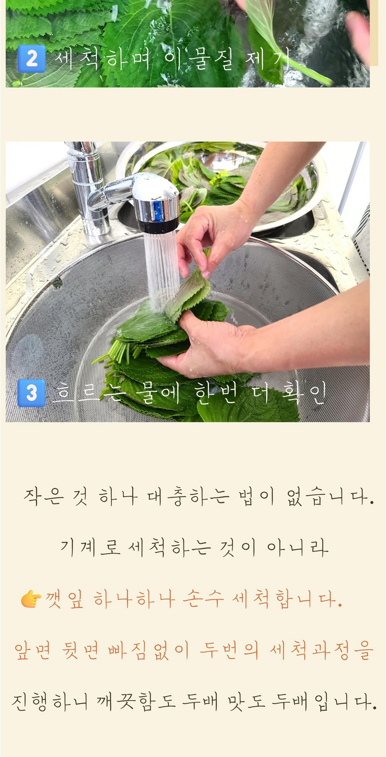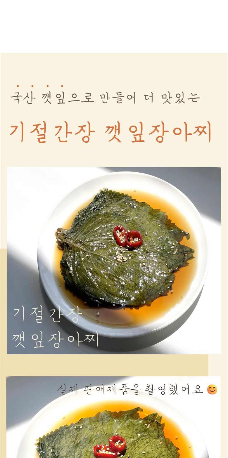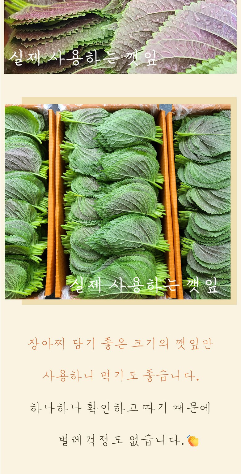 | 포장단위별 내용물의 용량(중량), 수량 | 500g, 1kg, 2kg, 4kg | 원재료명 및 함량 | 경북 하양의 깻잎만 사용합니다.^^ 식초, 간장, 설탕도 국내 대기업의 최고 제품만 사용합니다. |