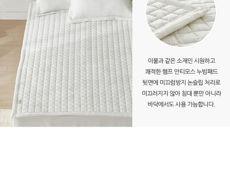 | 제품 소재 | 누빔이불: 60수 순면 외 | 색상 | 상품 상세페이지 참조 |