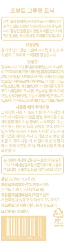 | 화장품제조업자, 화장품책임판매업자 및 맞춤형화장품판매업자 | 컨텐츠 참조 | 제조국 | 대한민국 |