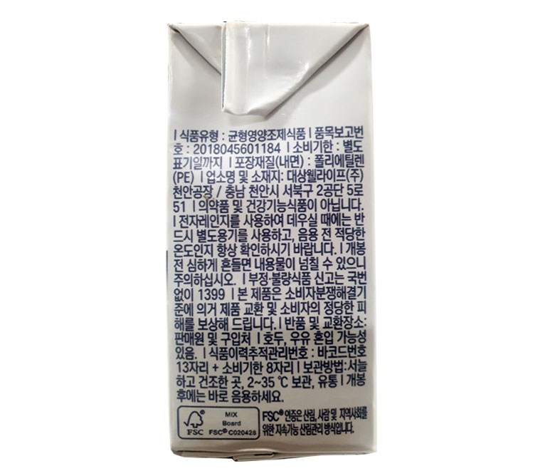- 섭취방법: 즉석섭취음료