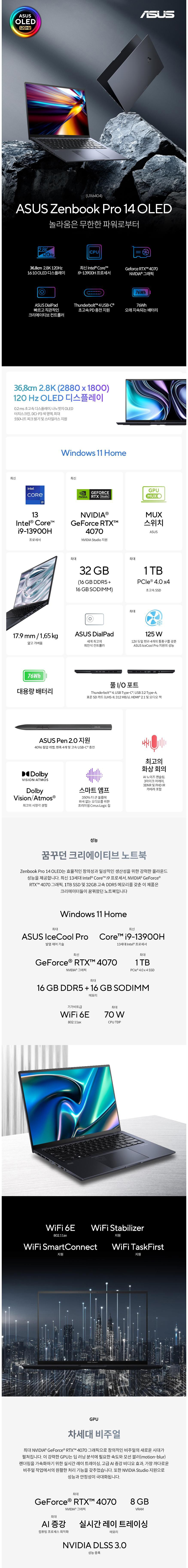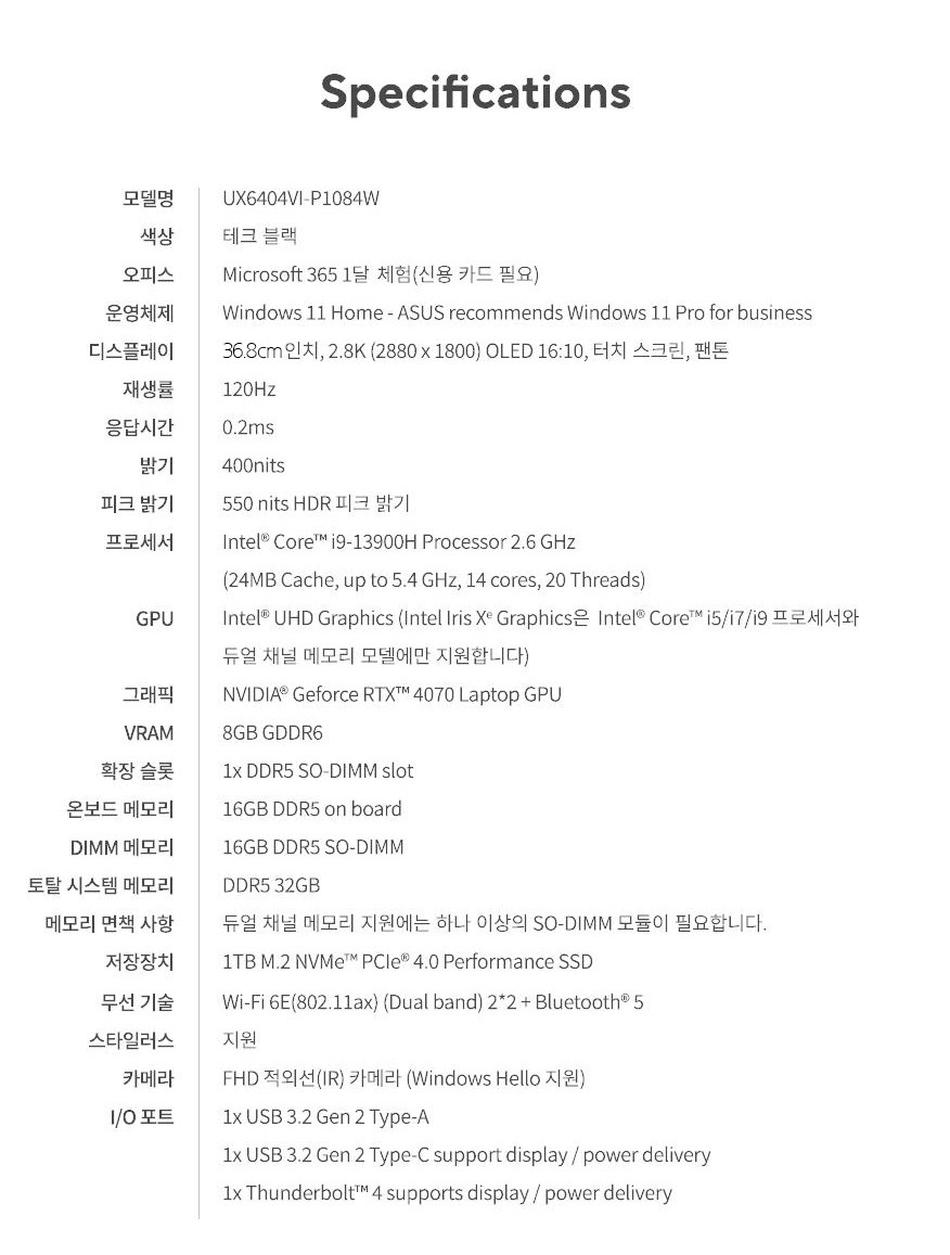 | 품명 및 모델명 | 에이수스 2023 젠북 프로 14 OLED / UX6404V | KC 인증정보 | R-R-MSQ-NB-UX6404V , YU10168-23008 |