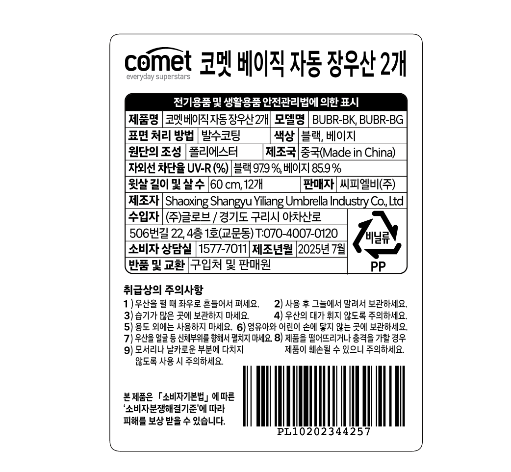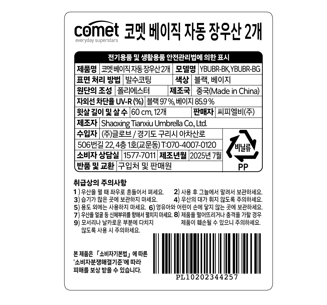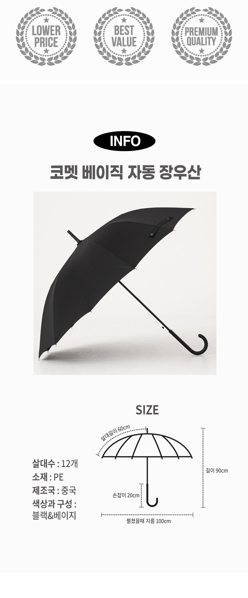 - 종류: 1단(장우산)