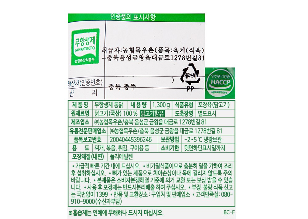 무항생제 인증 상품