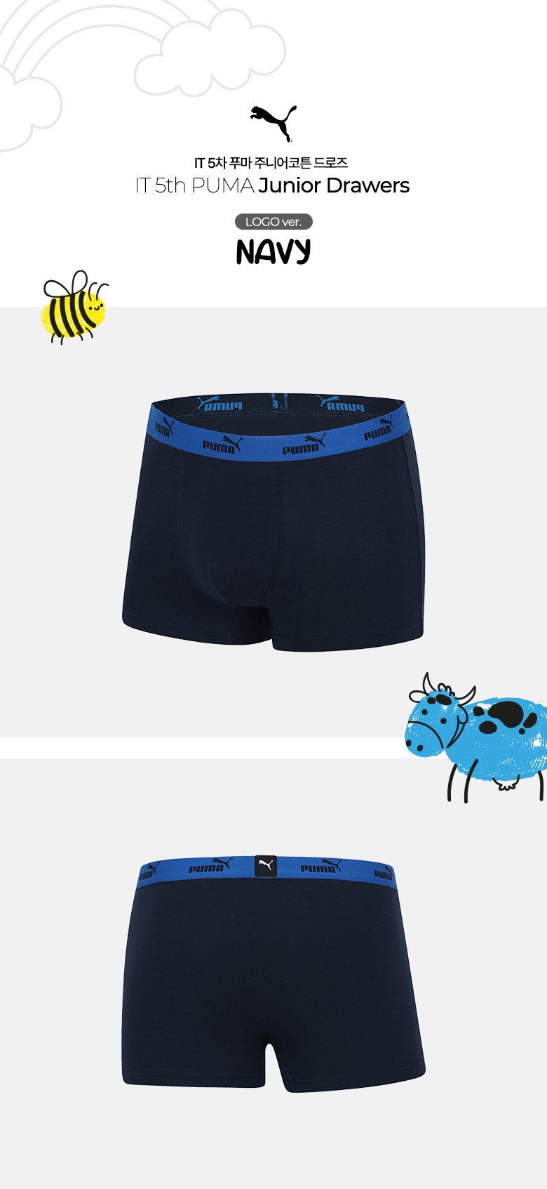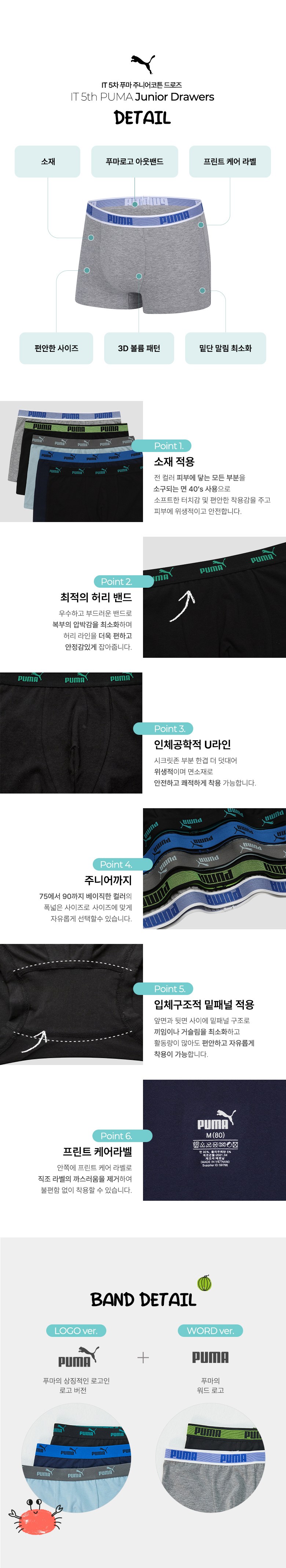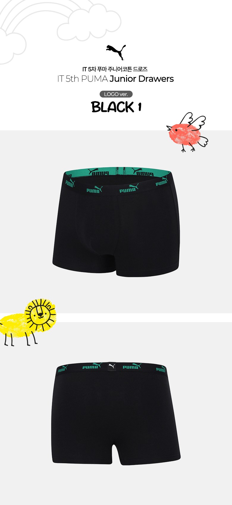 푸마바디웨어 주니어 남아용 학생 코튼 드로즈 5종 세트