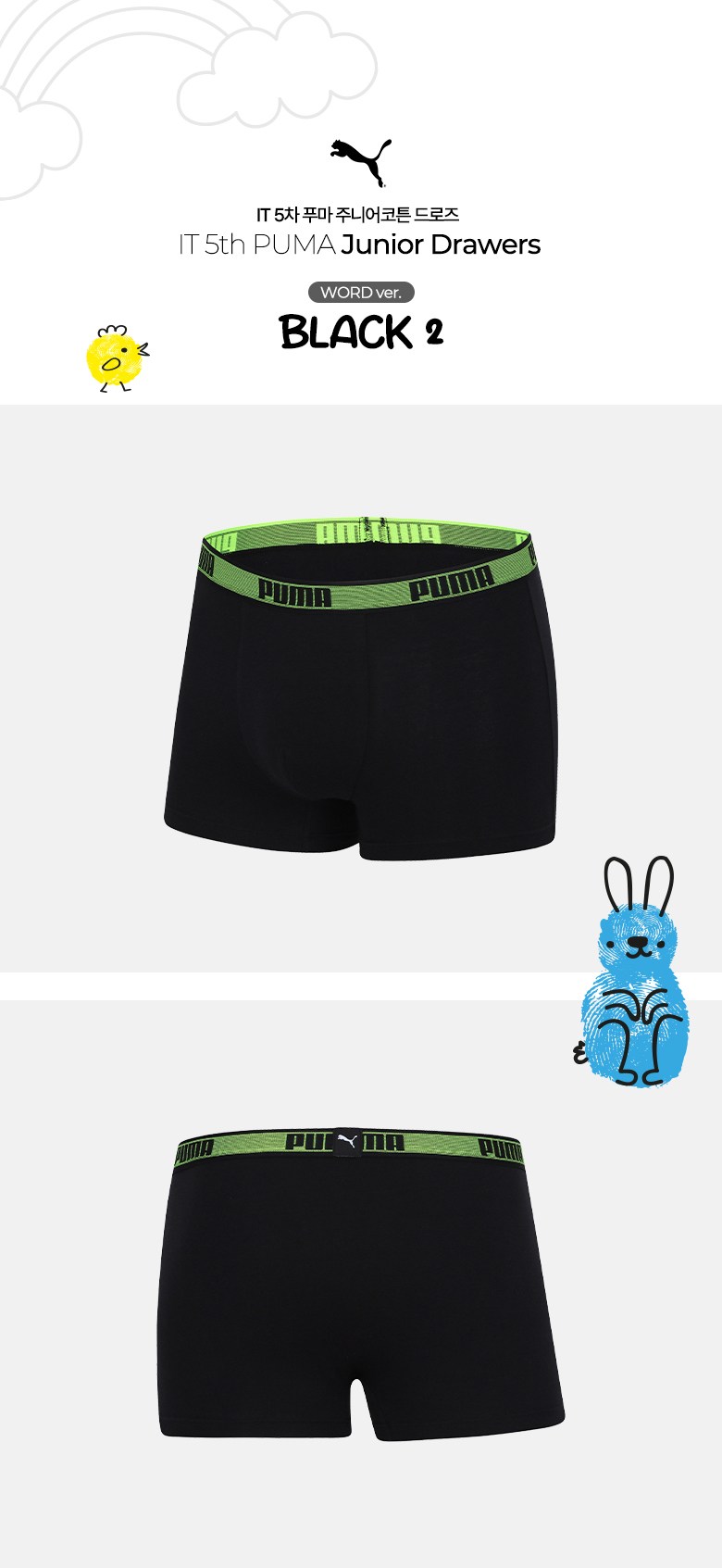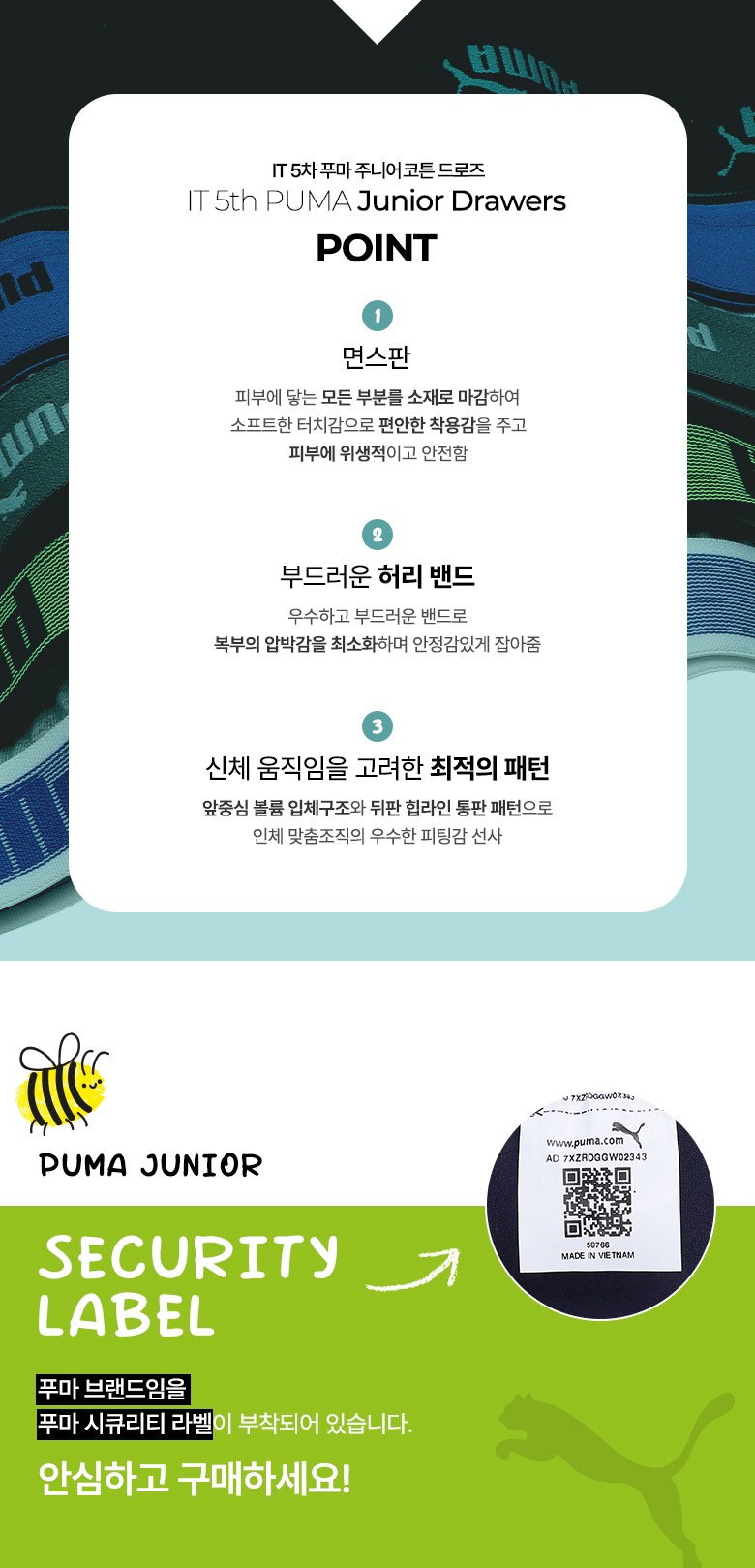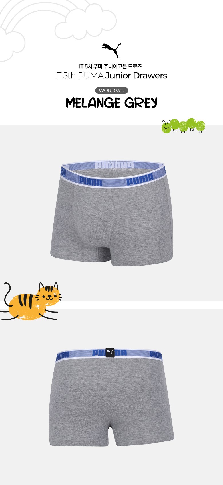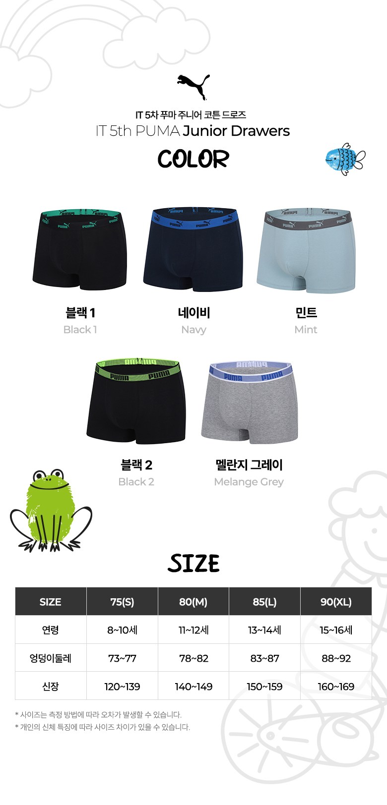 푸마바디웨어 주니어 남아용 학생 코튼 드로즈 5종 세트