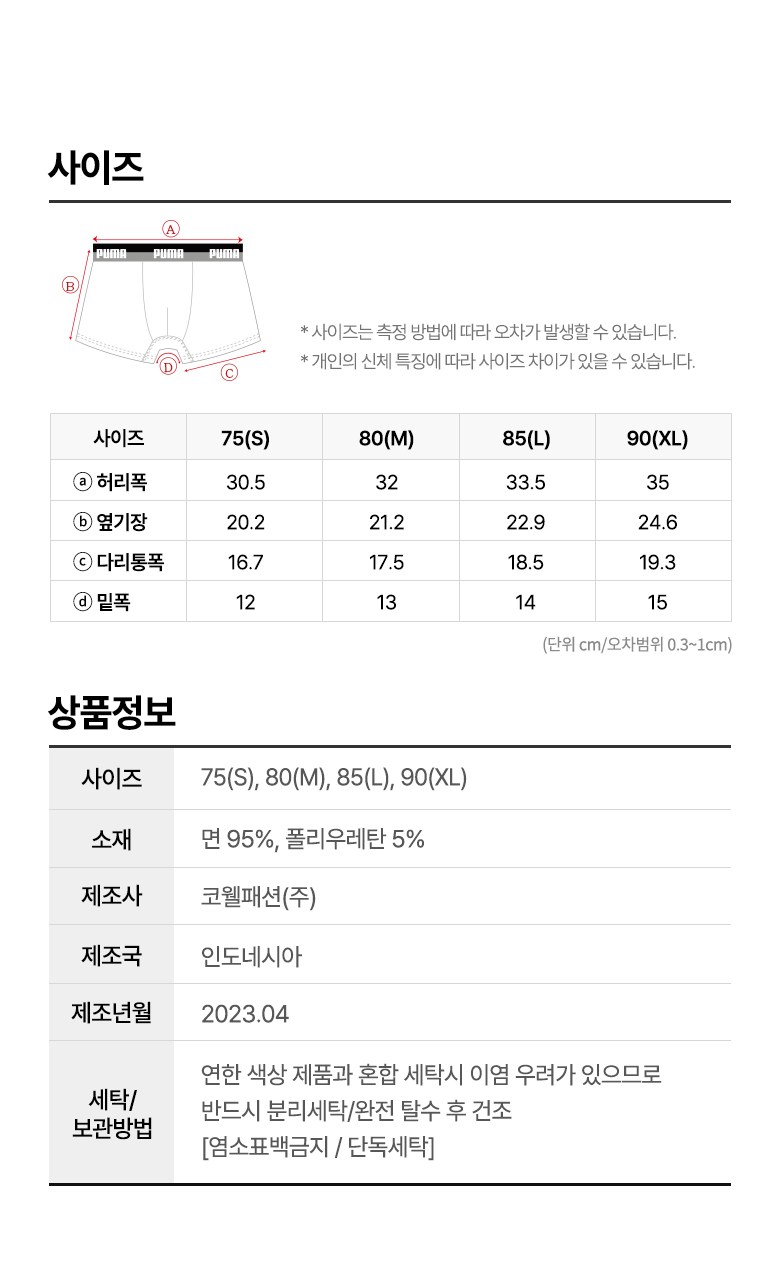 | 치수 | 컨텐츠참조 | 제조자(수입자) | 코웰패션(주) / 코웰패션 주식회사 |