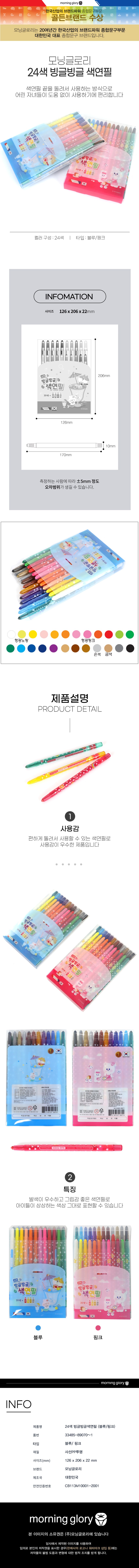 | 품명 및 모델명 | 모닝글로리 24색 빙글빙글 색연필 세트 핑크 | KC 인증정보 | CB113M10001-2001 |