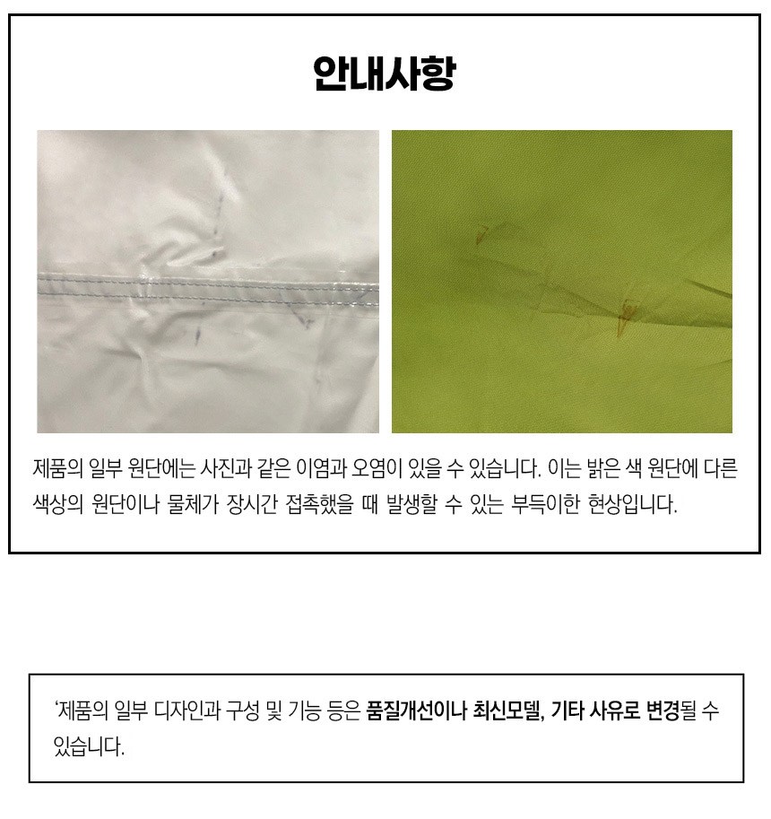 - ㆍ모니터 해상도의 차이로 인해 색상이나 이미지가 실제와 달라, 고객이 단순 변심으로 교환/반품을 무료로 요청하는 경우