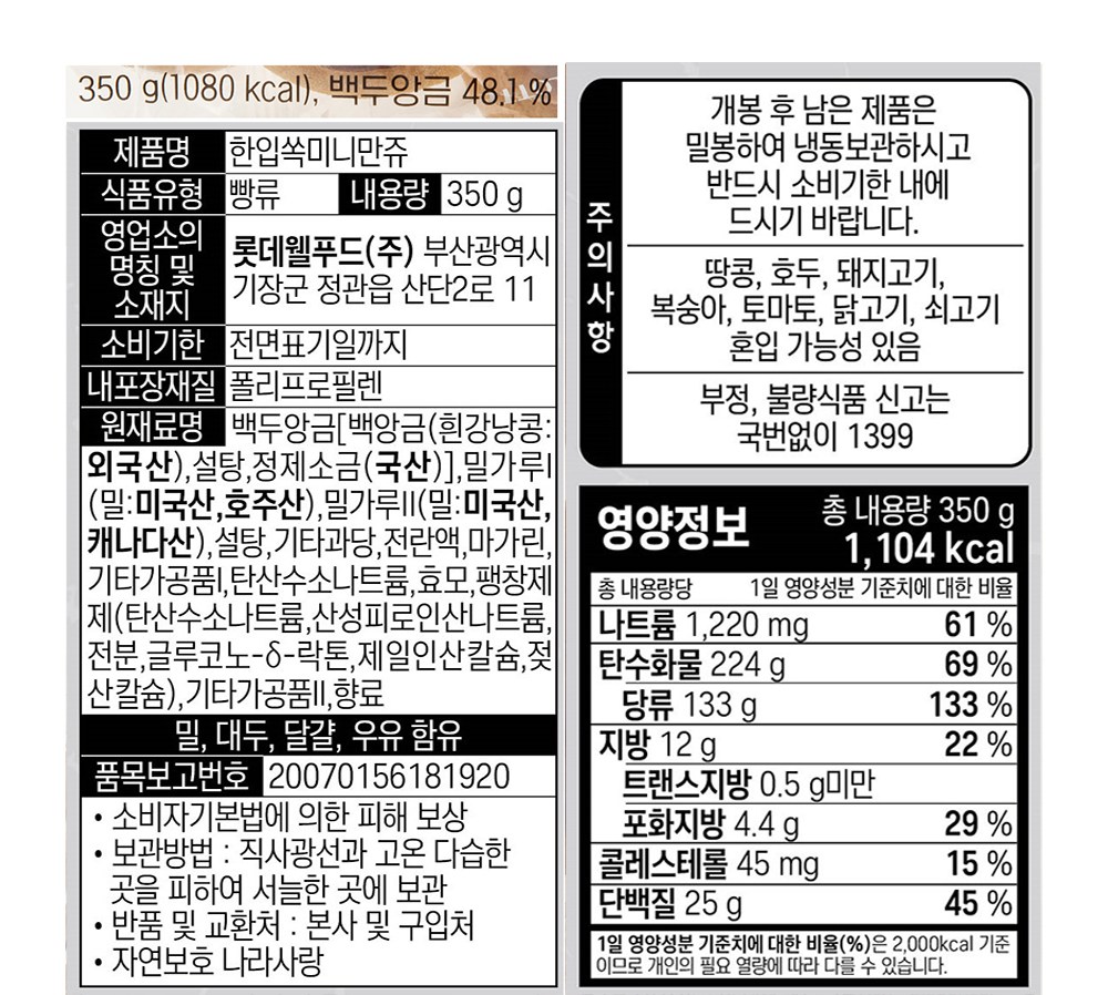 | 포장단위별 내용물의 용량(중량), 수량 | 350g x 2개,1개 | 원재료명 및 함량 | 컨텐츠 참조 |