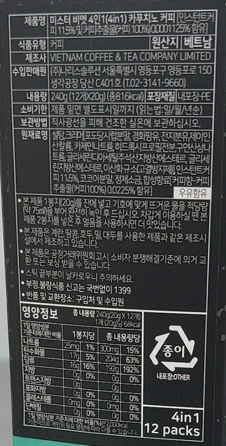 | 제품명 | 컨텐츠 참조 | 식품의 유형 | 커피 |