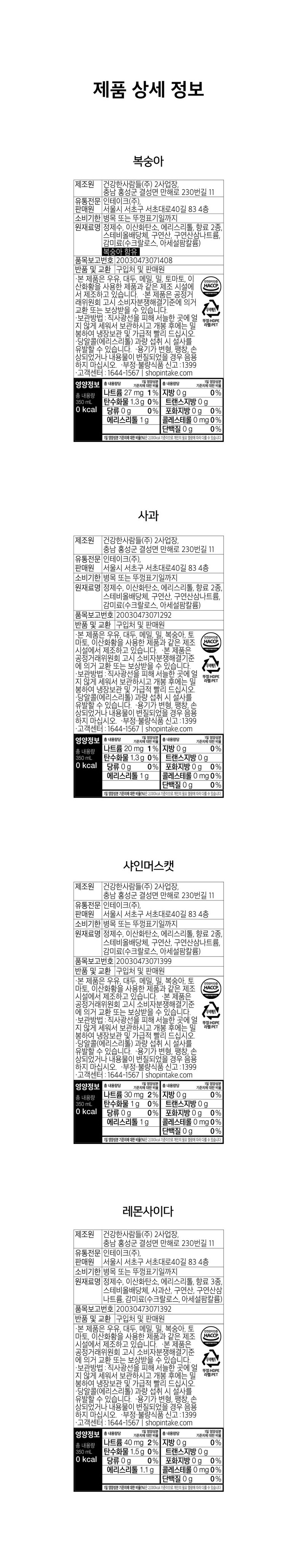 -. 4가지 맛이 있는데(복숭아, 레몬, 샤인머스캣, 사과) 혼합되어 있는 세트가 있어서 편하게 주문했습니다.