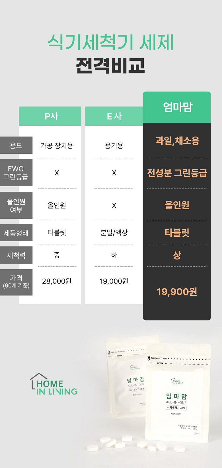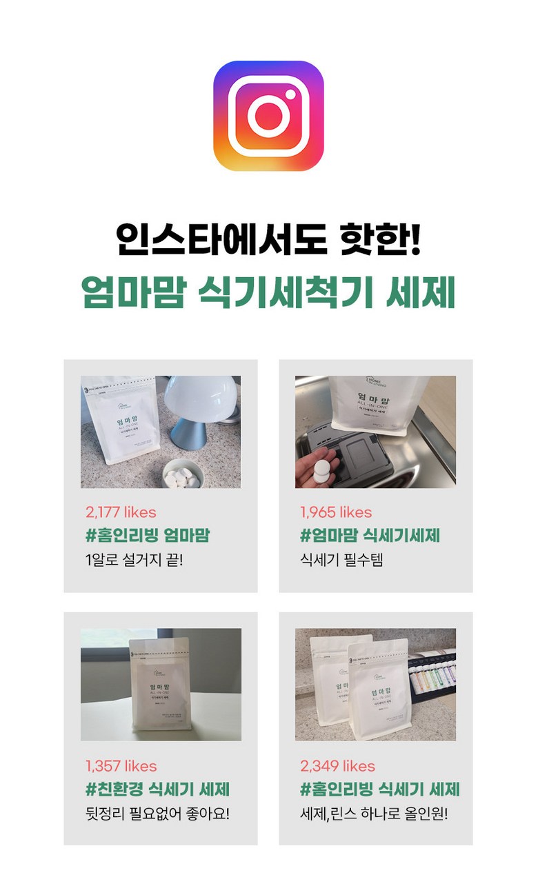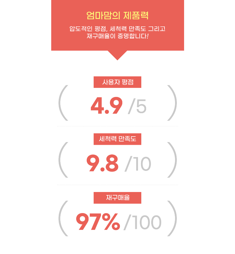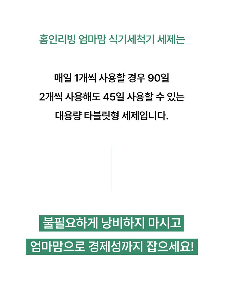 | 품목 및 제품명 | 엄마맘 식기세척기 세제 | 용도(표백제의 경우 계열을 함께표시) 및 제형 | 식기세척기&젖병세척기 전용 |