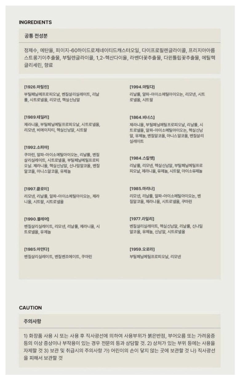 | 화장품제조업자, 화장품책임판매업자 및 맞춤형화장품판매업자 | 상품 상세페이지 참조 | 제조국 | 상품 상세페이지 참조 |