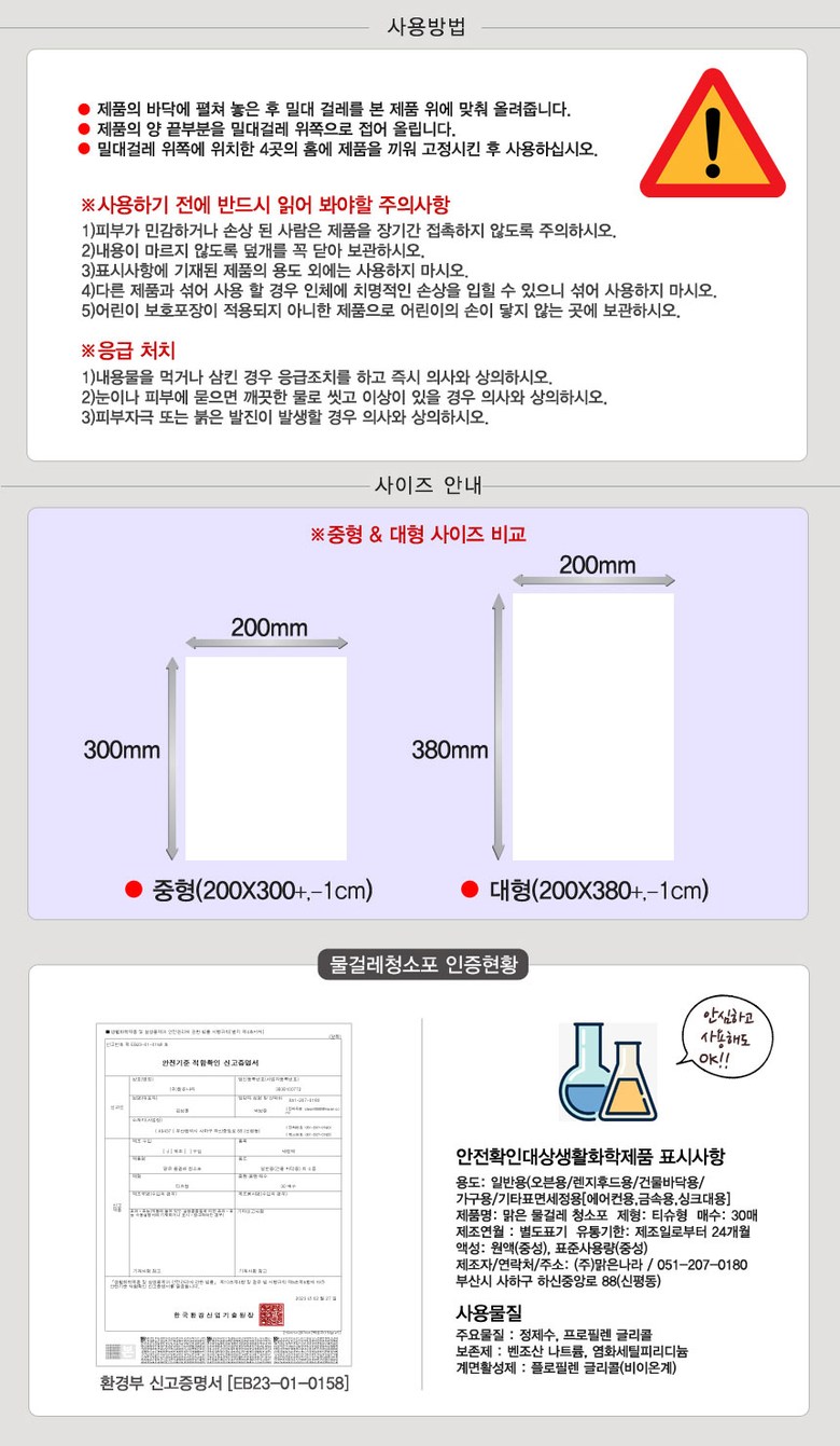 | 품목 및 제품명 | 상품 상세페이지 참조 | 용도(표백제의 경우 계열을 함께표시) 및 제형 | 상품 상세페이지 참조 |