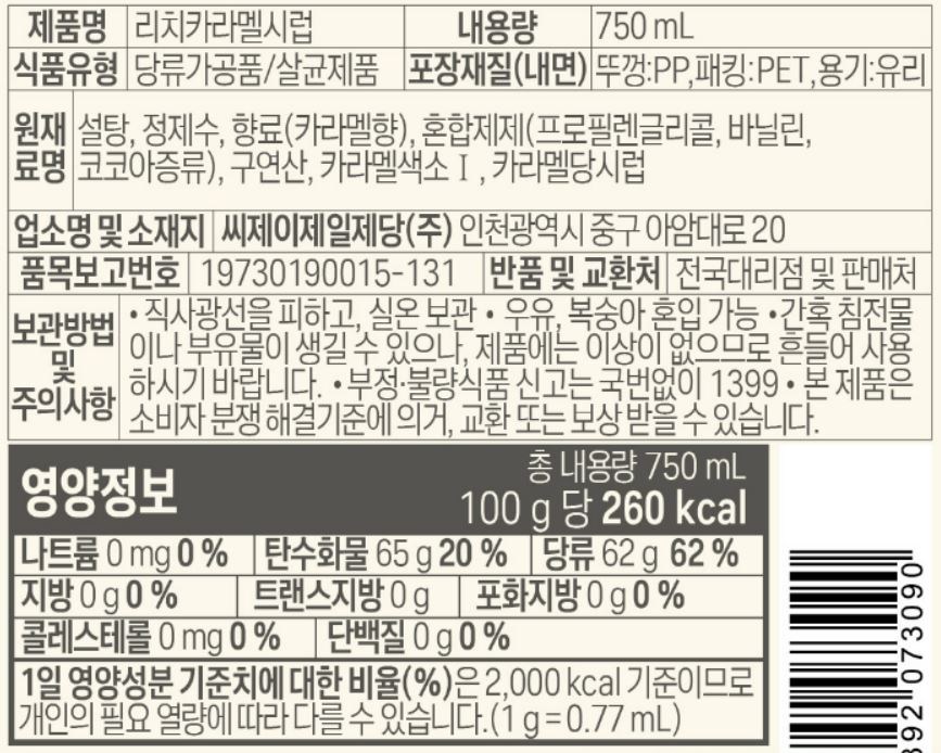 | 포장단위별 내용물의 용량(중량), 수량 | 750ml x 4개 | 원재료명 및 함량 | 컨텐츠 참조 |