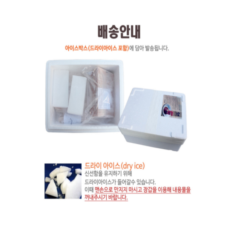 | 배송방법 | 신선/냉장/냉동 | 배송비 | 무료배송 · 도서산간 추가 배송비 - 제주 지역: 7,000원 - 도서산간 지역: 6,900원 |
