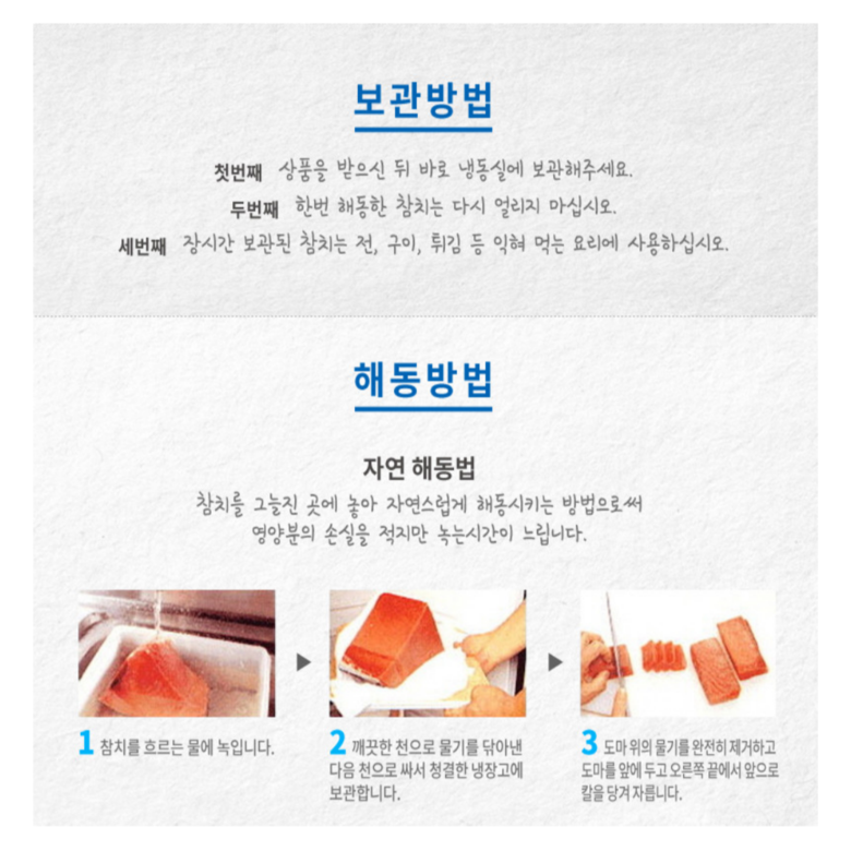 | 품목 또는 명칭 | 다랑어 속살 | 포장단위별 내용물의 용량(중량),수량,크기 | 1팩-400g |