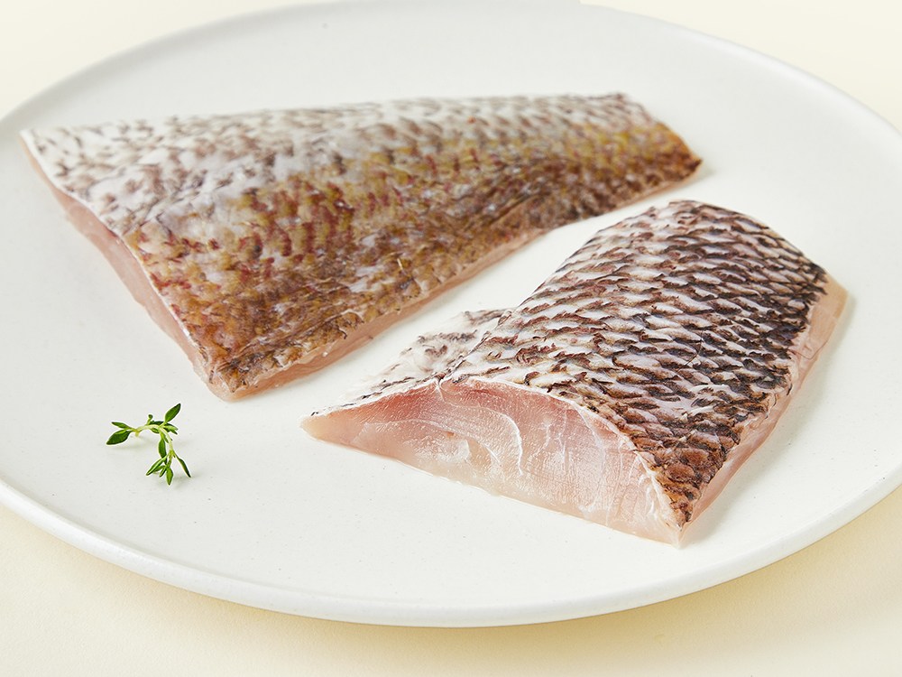 참돔은 지방 함량이 적고 비린맛이 거의 없어, 재료 본연의 맛을 중요하게 여기는 미식가들에게 사랑받는 대표적인 흰살생선이에요. 살점이 매우 치밀하고 탄력 있어, 쫄깃하면서도 탱글탱글한 식감을 느끼실 수 있죠. 특히 구웠을 때 껍질과 살코기 사이의 지방층이 녹아내리며 고소한 맛을 더해준답니다. 머리와 내장, 큰 뼈를 제거한 해슬로의 순살 참돔으로 근사한 스테이크를 완성해보세요.
