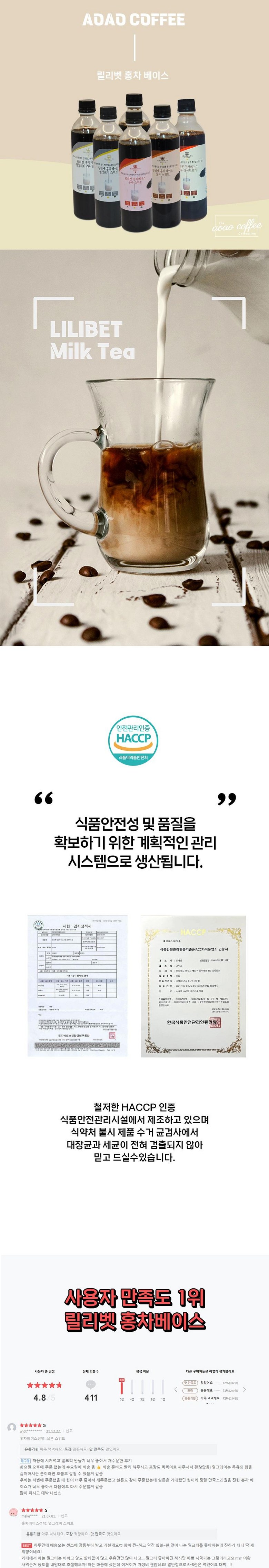 | 제품명 | 릴리벳 홍차베이스 얼그레이 스위트/릴리벳 홍차베이스 얼그레이 라이트 | 식품의 유형 | 액상차 |