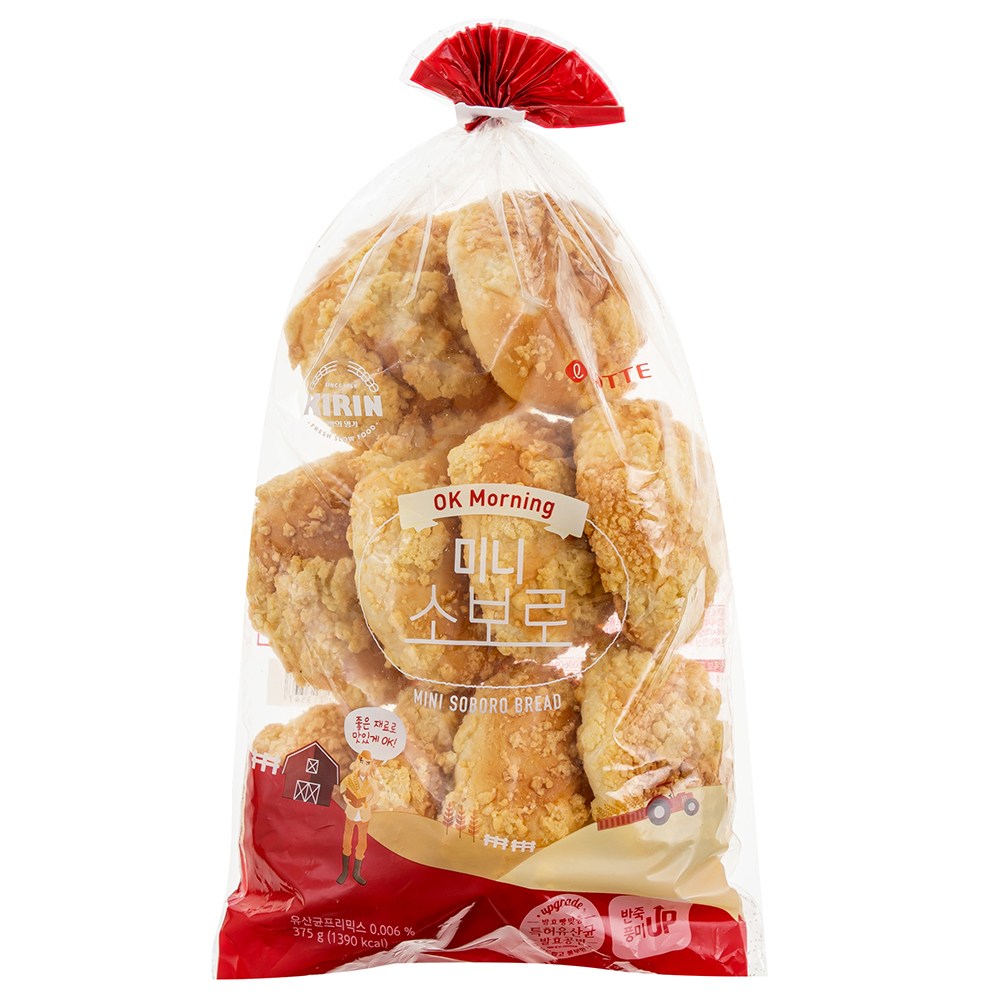 어느 빵집에 가도 쉽게 볼 수 있는 기본 빵, 소보로예요. 은은한 단맛과 고소한 풍미가 좋아 어른, 아이 할 것 없이 좋아하는 빵이랍니다. 기린의 미니 소보로는 겉은 바삭하고 속은 폭신폭신한 식감이 일품이에요. 바쁜 아침에 우유를 곁들여 하루를 든든하게 시작해보세요.