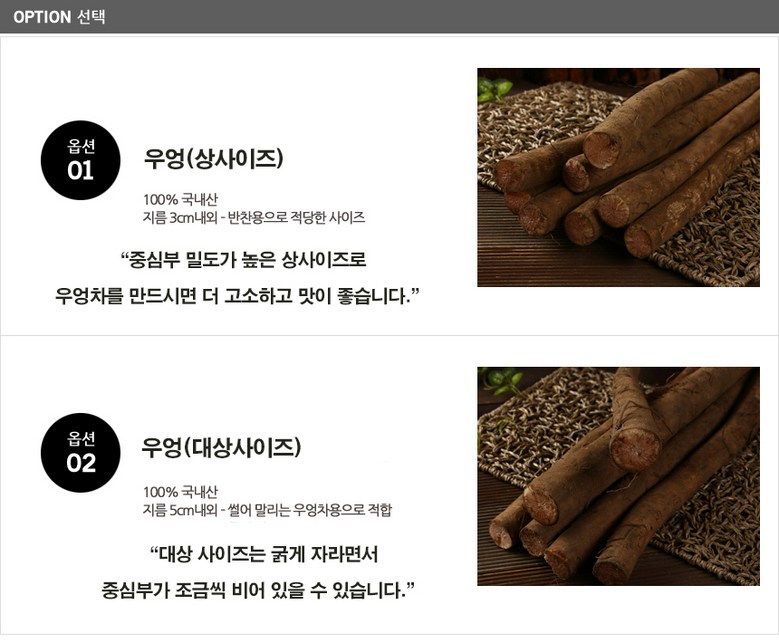 우엉차용으로 쓰시면 대상 사이즈보다 고소하고 맛이 좋습니다.