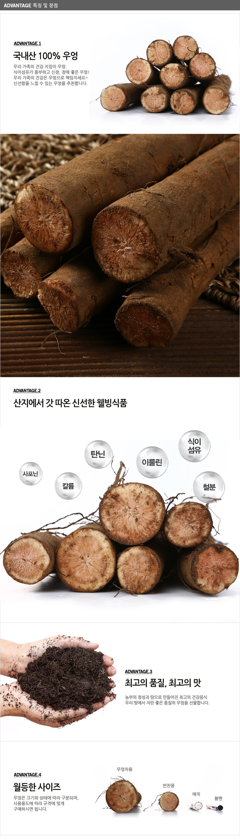중심부 밀도가 높은 우엉으로 반찬용으로 쓰시기 좋고