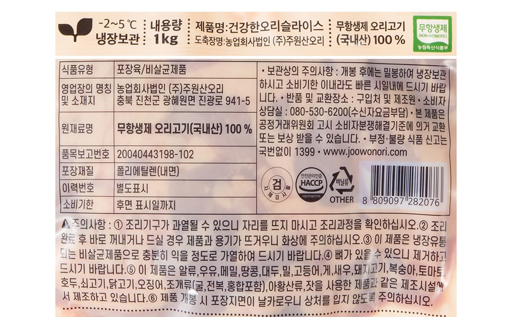 주원산오리는 오리 가공 관련 기술을 보유한 오리고기 전문 기업입니다. 까다로운 품질 관리를 통해 신선육 및 가공육을 선보이고 있습니다. 정직한 마음과 넓은 유통망을 통해 맛있는 오리고기를 제공합니다.