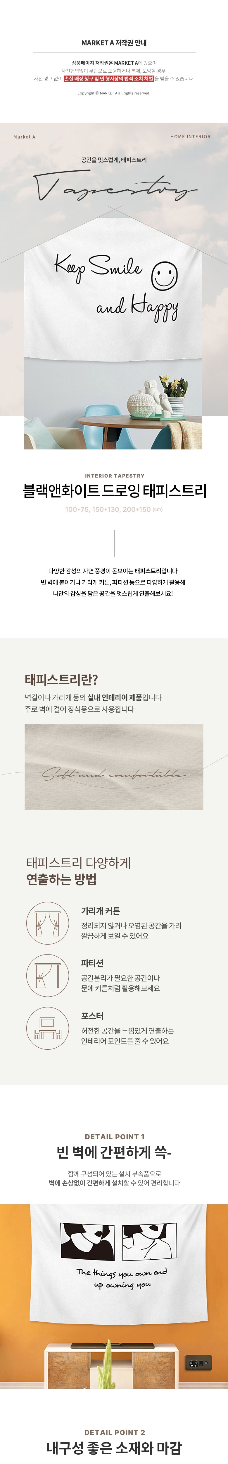 | 품명 및 모델명 | MA 블랙앤화이트 드로잉 태피스트리 | 인증/허가 사항 | 해당없음 |