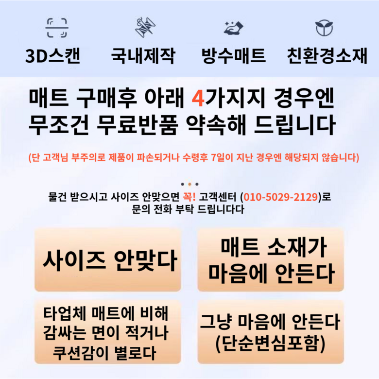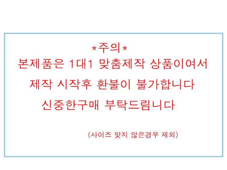 - ㆍ모니터 해상도의 차이로 인해 색상이나 이미지가 실제와 달라, 고객이 단순 변심으로 교환/반품을 무료로 요청하는 경우