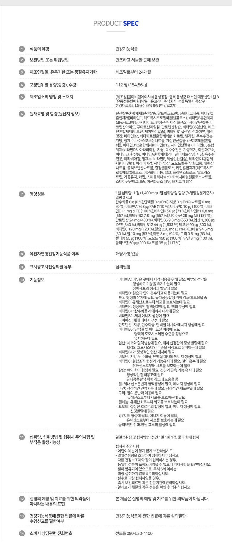 | 원료명 및 함량 | 상품 상세페이지 참조 | 영양정보 | 상품 상세페이지 참조 |