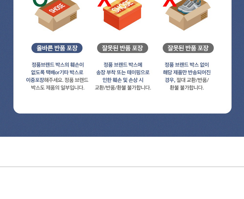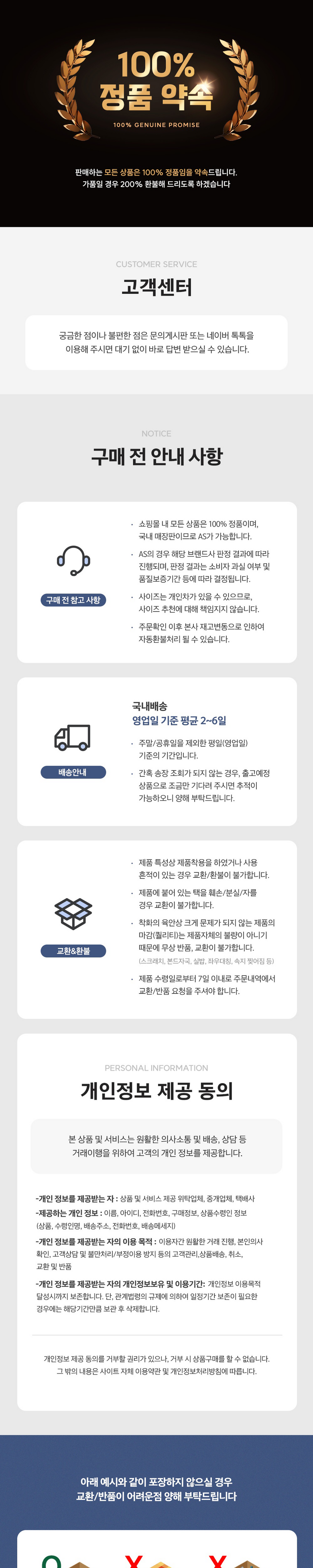 | 교환/반품 비용 (왕복비용) | 8,000원 - 단, 고객 변심의 경우에만 발생 - 도서산간 지역 배송불가 |
