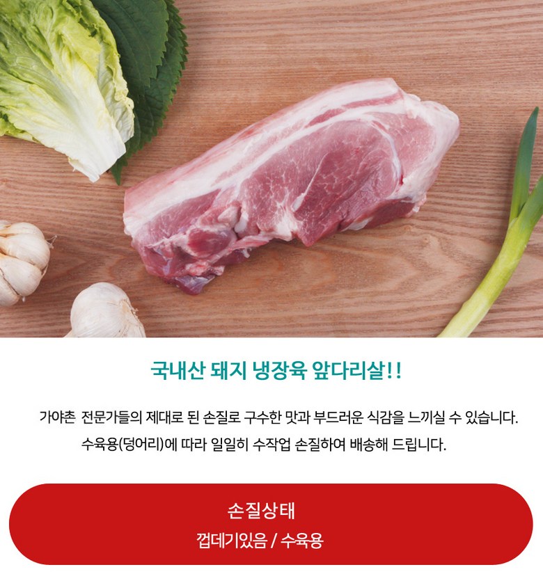 | 배송방법 | 신선/냉장/냉동 | 배송비 | 무료배송 - 도서산간 지역 배송불가 |