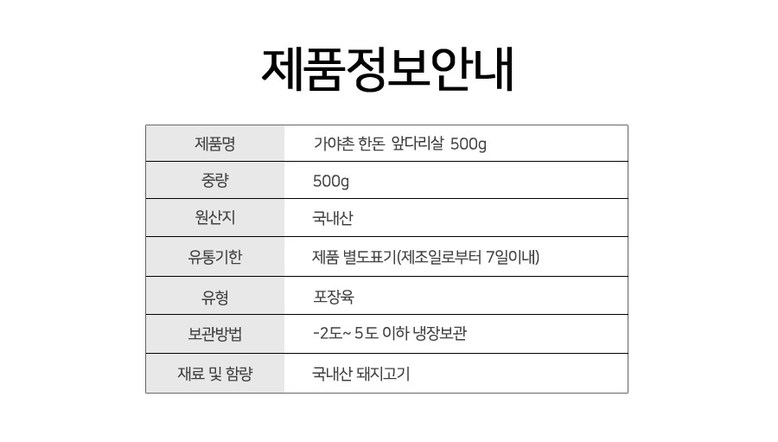 | 품목 또는 명칭 | 상품 상세페이지 참조 | 포장단위별 내용물의 용량(중량),수량,크기 | 500g * 1팩 |