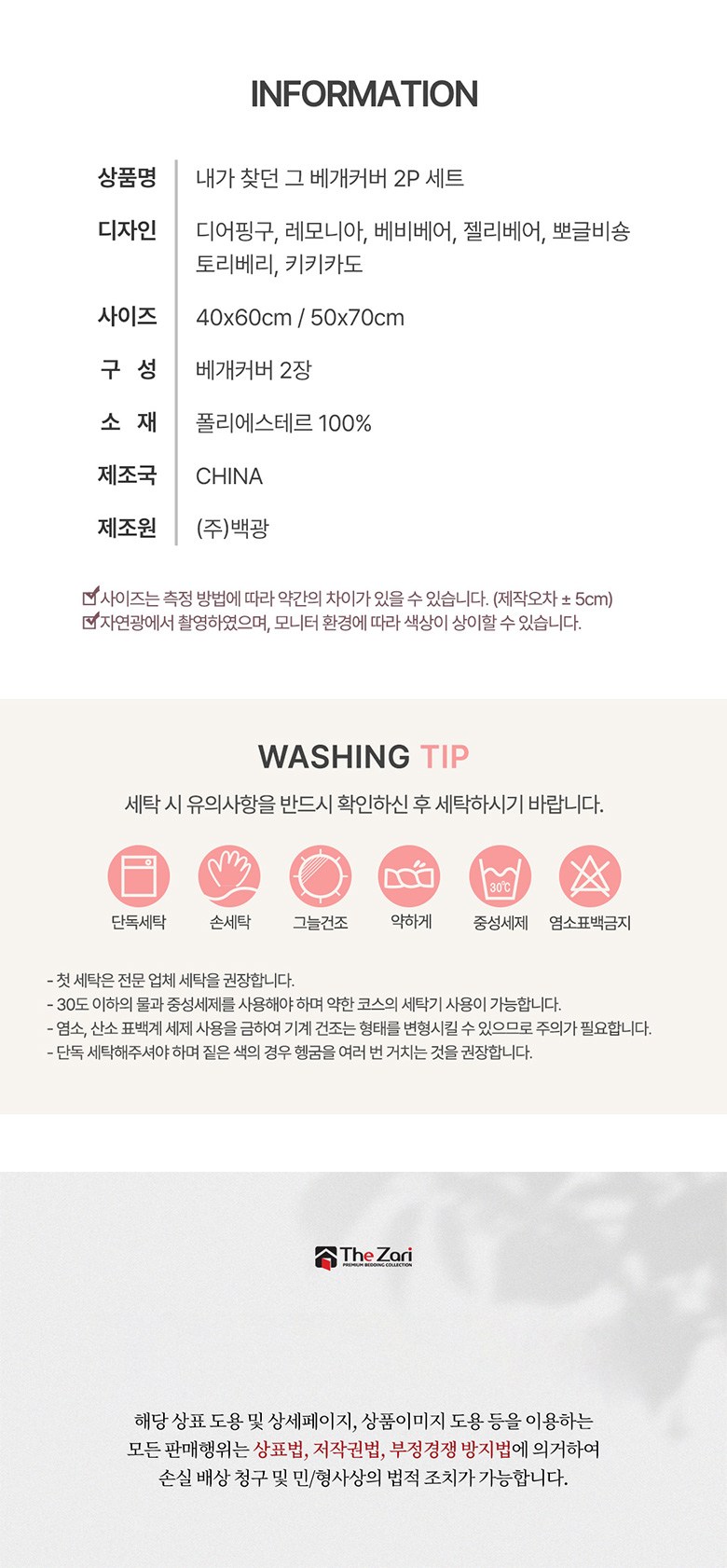 - 세탁방법: 세탁기사용가능